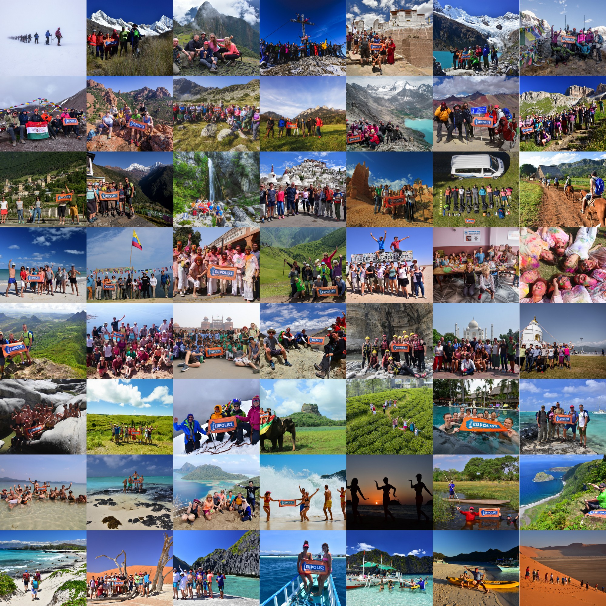 2010 óta kivétel nélkül minden évben, több ezer példányban készítettük el az aktuális Eupolisz naptárakat. A törzsutasainknak automatikusan kiküldött, és sok utasunk által megrendelt ingyenes naptárak nagy népszerűségnek örvendtek az elmúlt években, hiszen hónapról-hónapra egy-egy új, érdekes országot, vagy épp izgalmas helyszínt mutattunk be nektek túravezetőink képeivel.